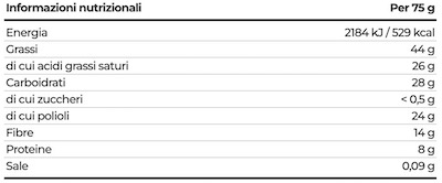 pasta di cacao, edulcorante: maltitolo, burro di cacao, cacao magro in polvere, inulina, emulsionante: lecitina di girasole; aroma naturale di vaniglia.