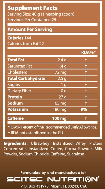 SCITEC NUTRITION - PROTEIN COFFEE La formula di Protein Coffee è un caffè alle proteine del siero d’alta qualità, con basso contenuto di zucchero e caffeina (sono disponibili pure varianti zuccherate e decaffeinate senza zucchero)!