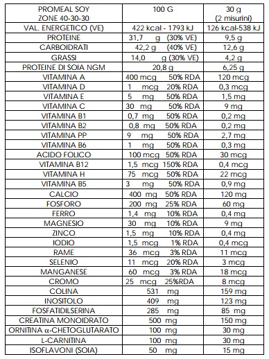 VOLCHEM - PROMEAL SOY ZONE 40-30-30 Formulato secondo i criteri della dieta a zona 40-30-30, quindi con più proteine e meno zuccheri rispetto ad una dieta normale, con l’aggiunta di minerali, vitamine, ornitina, carnitina e creatina monoidrato.